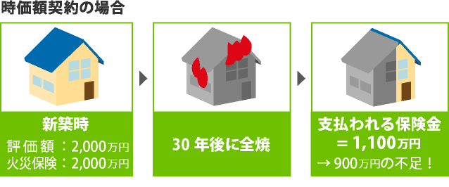 古い火災保険では以下のような契約が多く、いずれも補償が不足する危険な状態です。